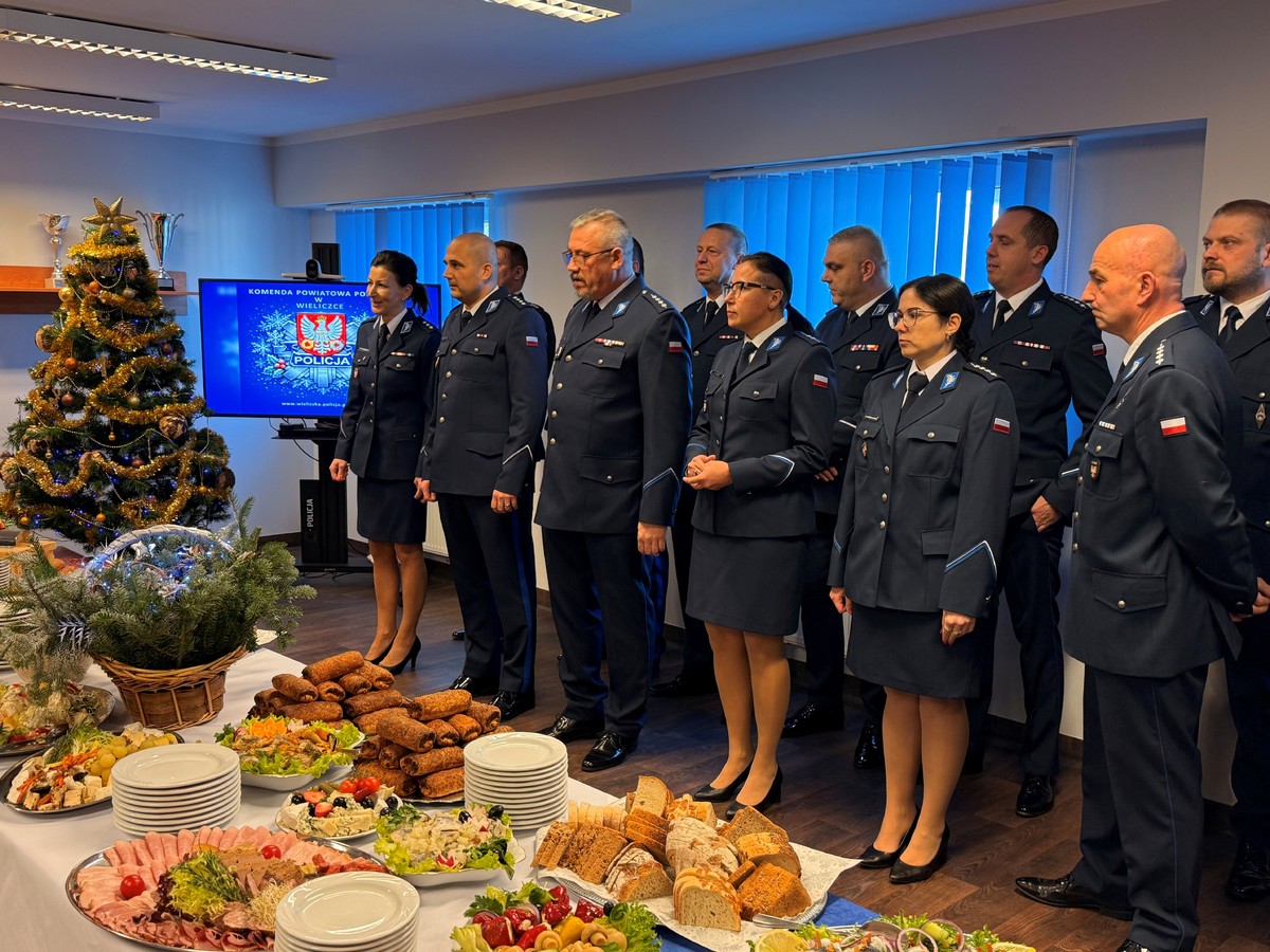 18 grudnia br. w Komendzie Powiatowej Policji w Wieliczce odbyło się uroczyste spotkanie opłatkowe z udziałem kierownictwa, funkcjonariuszy oraz pracowników cywilnych jednostki. W wydarzeniu uczestniczyli także zaproszeni goście – przedstawiciele instytucji na co dzień współpracujących z Policją na rzecz bezpieczeństwa mieszkańców powiatu wielickiego.